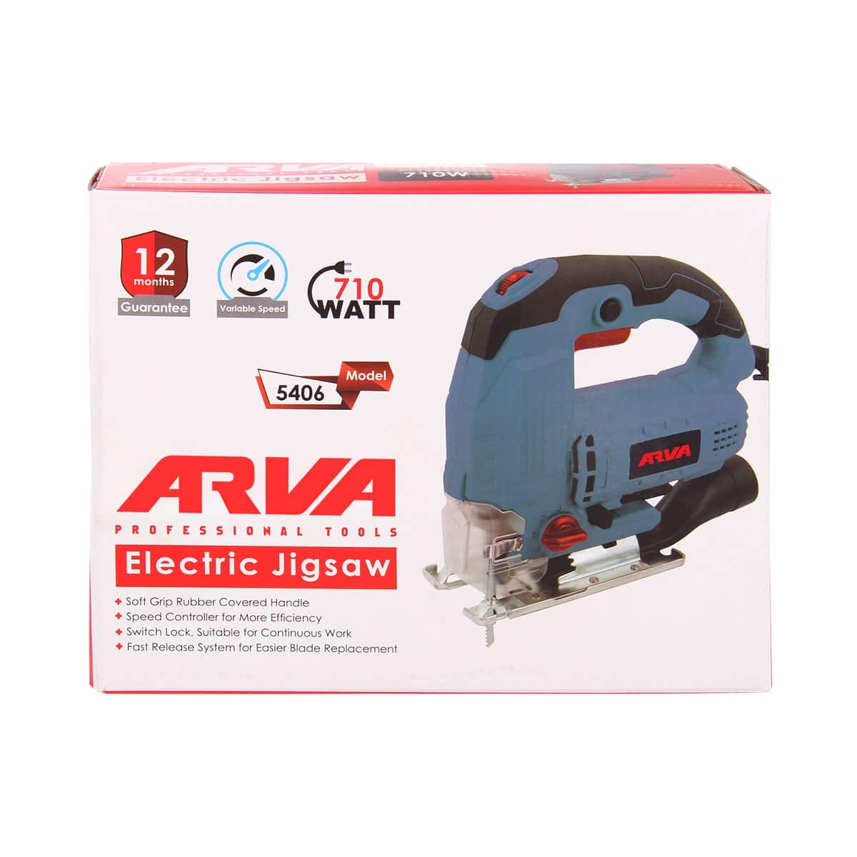 مشخصات محصول منبع تغذیه: برق ۲۲۰ ولت ۵۰ هرتز قدرت دستگاه: ۷۱۰ وات سرعت بی باری: ۱۰۰۰ تا ۳۱۰۰ دور بر دقیقه تنظیم سرعت برش: سه حالت حداکثر عمق برش در فلز: ۱۰ میلی متر حداکثر عمق برش در چوب: ۱۰۵ میلی متر حداکثر زاویه مورب: ۴۵ درجه جنس تیغه های قابل وصل: چوب و فلز طول تیغه ها: ۱۰۰ میلی متر نوع حرکت تیغه: بالا و پایین وسایل قابل برش: چوب-فلزات گیره تیغه: پیچی مدت گارانتی: ۱۲ ماه مجهز به سیستم لرزش گیر کالکتور ضخیم و طول عمر بالا ۱۰۰% مس موتور قدرتمند صنعتی بلبرینگ های ضدغبار-کلیدپاور ضد غبار-کابل دستگاه دارای استاندارد VDE سیم پیچی دستگاه ۱۰۰% مس مجهز به سیستم تعویض سریع و آسان تیغه دارای قفل کلید روشن و خاموش مناسب جهت کاربرد طولانی مجهز به تنظیم سرعت جهت بازدهی بیشتر دسته ضد لرزش با روکش لاستیک قابلیت تنظیم سرعت پیش روی قابلیت برش زاویه دار مجهز به دیمر تنظیم سرعت برش جهت بازدهی بیشتر