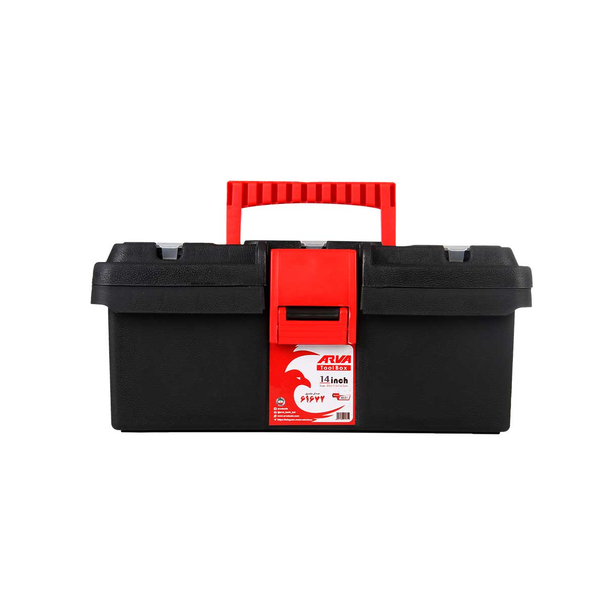 مشخصات محصول ساخت ایران تهیه شده از پلاستیک فشرده بسیار با کیفیت دارای دسته ی مقاوم و بسیار محکم طراحی ارگونومیک به منظور بالا بردن فضای داخل جعبه دارای قفل محکم و مقاوم مجهز به سه محفظه درب دار برای پیچ و مهره تعداد طبقات: ۲ تعداد محفظه: ۱۱ یک سینی مجزا سایز جعبه ابزار: ۱۴.۵×۱۷.۵×۳۳